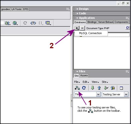 1. Connect to see the testing site files. Once you're connected, click at 2 to add a mysql connection available to your site See Image 3. 2 of 9