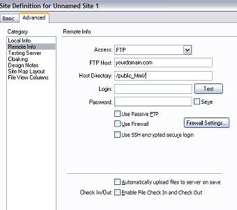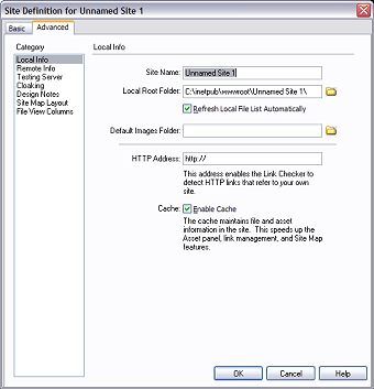 Figure 3. shows the New Site window that comes up when you select Site...New. Give it any name you like. Choose the local location of the site. This would be a folder on your hard drive. Click here for more details, and some examples |