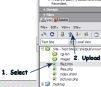 To set up Dreamweaver to connect to your web server, you want to first create a site in Dreamweaver. This can be accomplished by clicking Site...New Site in either of the places shown in fig. 1 or 2 (blue arrow). If you click on the button below the red arrow in fig. 2, you will bring up the site window. (see below). |